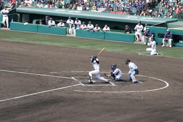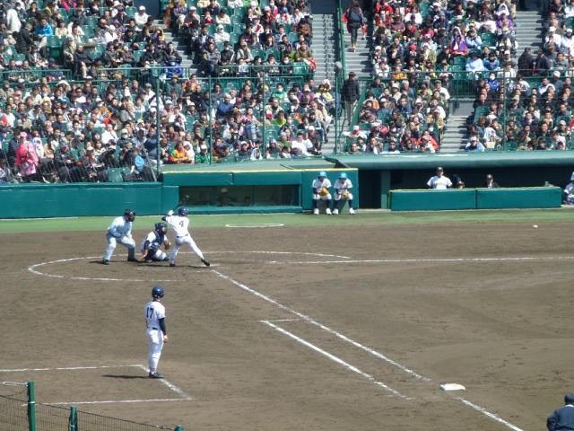 攻撃は単打に犠打を絡めながら小刻みに得点を重ねる。ピッチャーが要所を締め、堅い守備で大きな失点を与えない。試合は予想通りの展開になりました。両チームとも特徴が似ており、実力の伯仲を物語るように同点と逆転を繰り返し、息をつく暇もないゲームになりました。まさに「競り勝つ」とはこのことだと言わんばかりの試合でした。