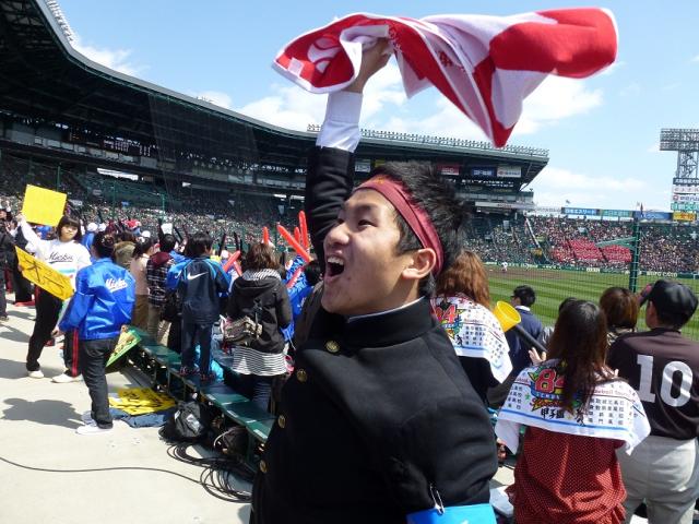 中国地方のチャンピオンチームを相手にして、最後まで気の抜けない展開だっただけに、アルプススタンドに陣取った応援席は興奮が収まらず、歓声と拍手に長く包まれました。腕を振り、大きな声で校歌を歌い、大いに一体感を味わった瞬間でした。