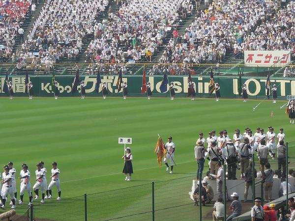 8月8日(木)、甲子園球場にて第95回全国高校野球選手権記念大会の開会式が行われ、4年ぶり11回目出場の三重高校選手が堂々と入場行進をしました。テレビの解説者から、「砂浜で走りこみをおこなってきた」と紹介され、行進の様子とその解説から、本校の活躍が期待できます。