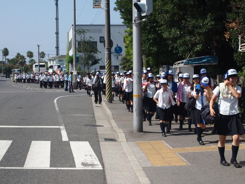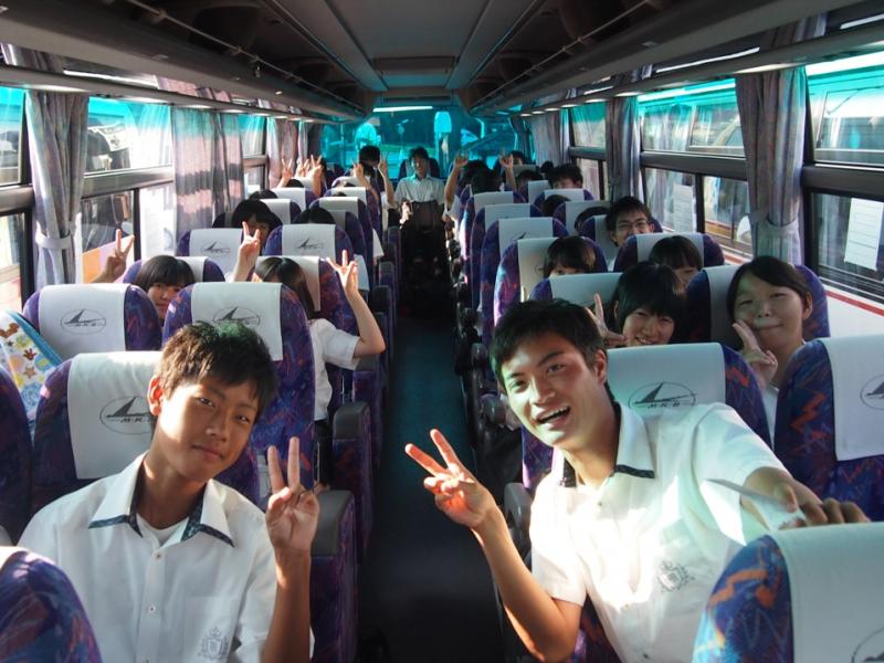 途中のバスのなかでは生徒のみなさんの表情が明るく元気で、全員応援にむけ、気持ちを新たにすることができました。こうして数時間の移動のあと、バスが駐車場に到着し、徒歩で夢の舞台、甲子園に移動しました。(後編に続く)