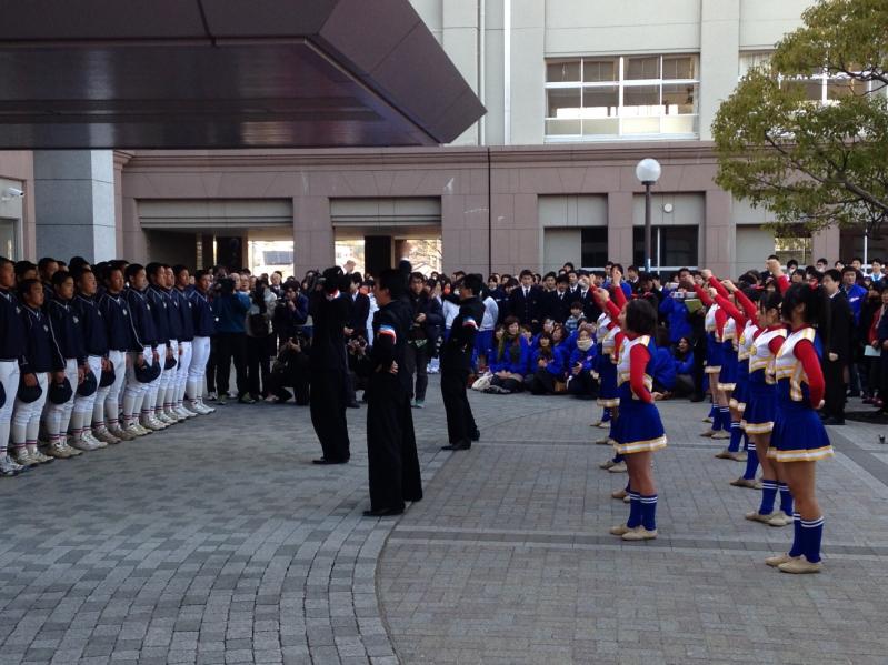 1月24日、春のセンバツ出場決定をうけ、数百名の生徒、保護者、後援会のみなさん、報道陣をまえに出場報告会がおこなわれました。山中光茂松阪市長も駆け付け、盛大な報告会となりました。