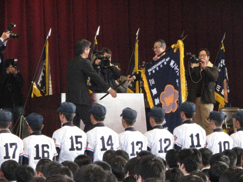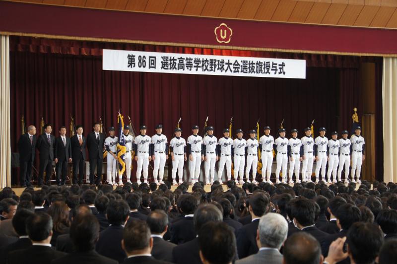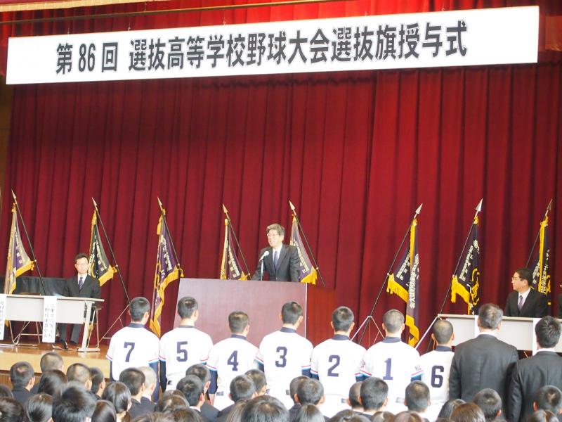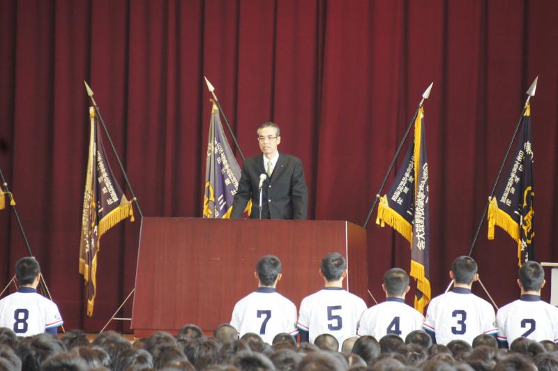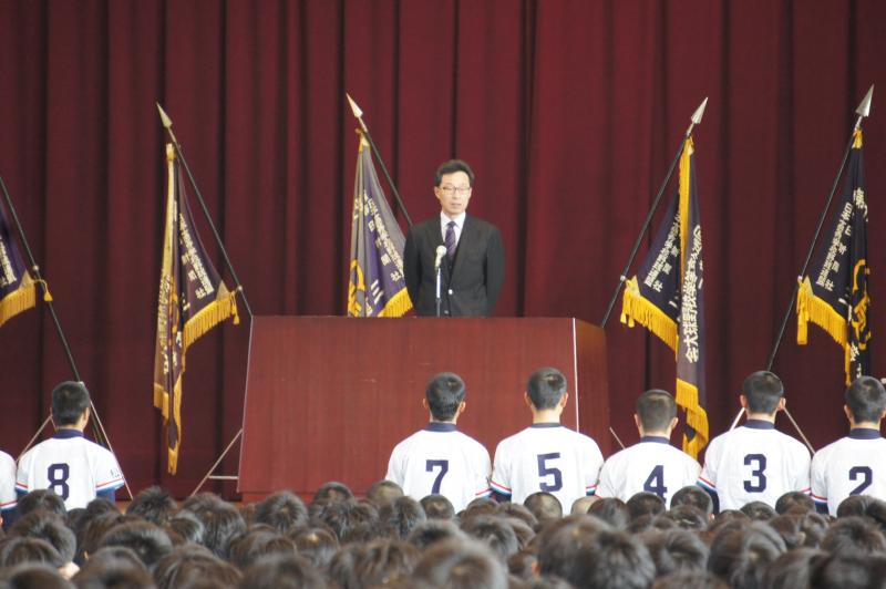2月25日(火)午前11:00より選抜旗授与式がおこなわれました。全校生徒(中学生、高校生)、教職員、保護者、来賓のみなさま約1600名の出席もと、盛大かつ厳粛に式が進行しました。
