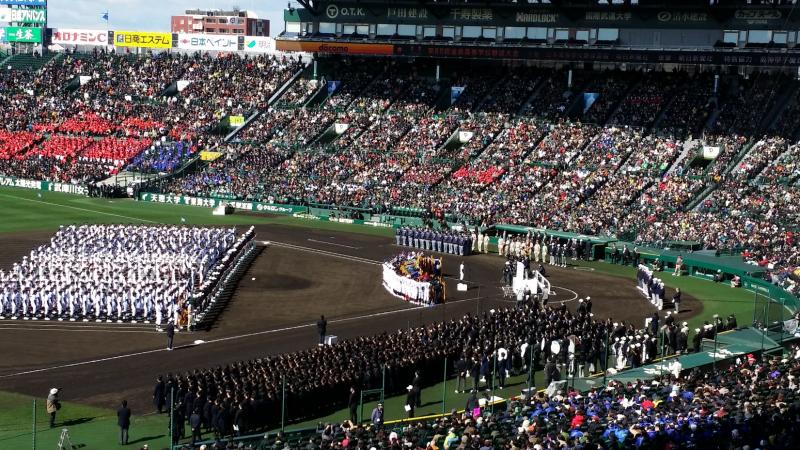 3月21日、本校硬式野球部は第86回選抜高等学校野球大会の開会式に臨みました。力強く行進をおこない、2年ぶり12回目の選抜甲子園の土を踏みました。