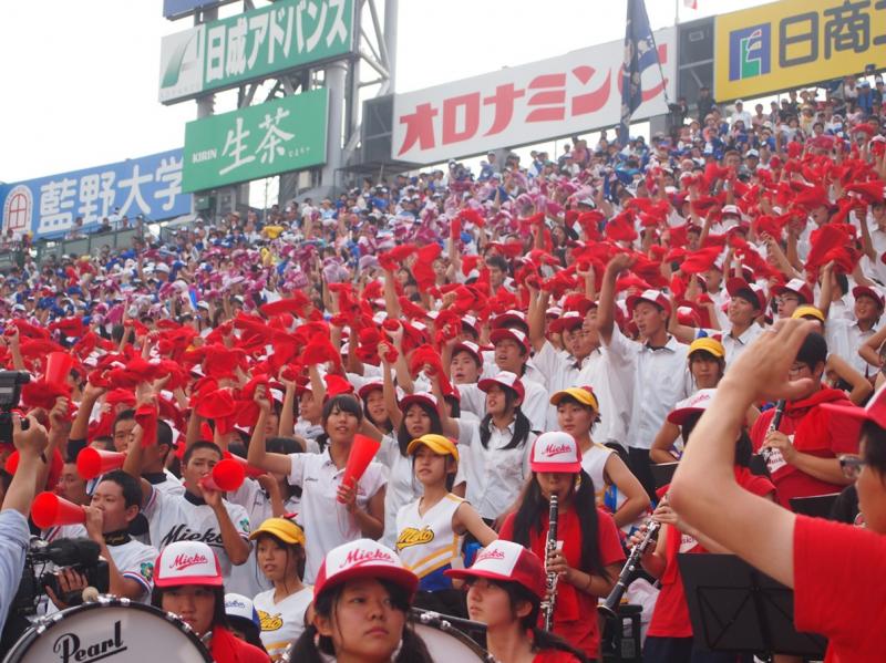 最後は劇的な展開が待っていました。11回裏、再び満塁の場面をつくり、最後はフォアボールの押し出しでサヨナラ勝ち。周りでは泣きながら抱き合って喜んでいる姿が見られました。校歌が流れると応援スタンドの盛り上がりは最高潮に。誰の口からも歌詞に加えて歓喜の気持ちが溢れ出しました。
