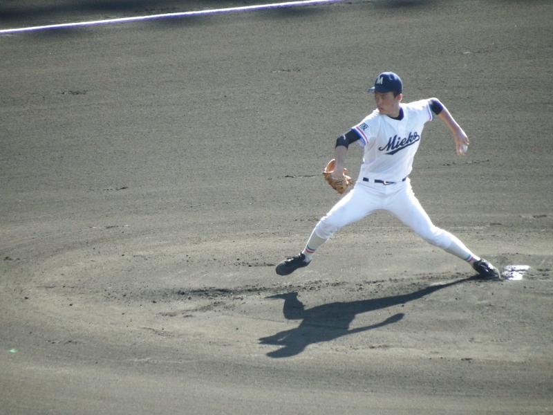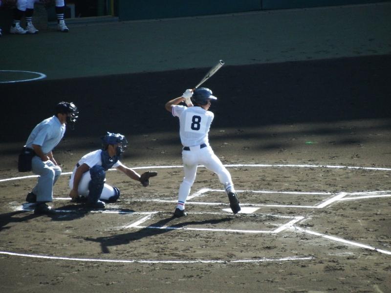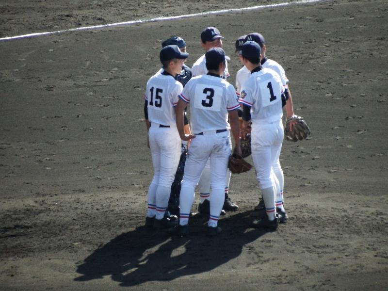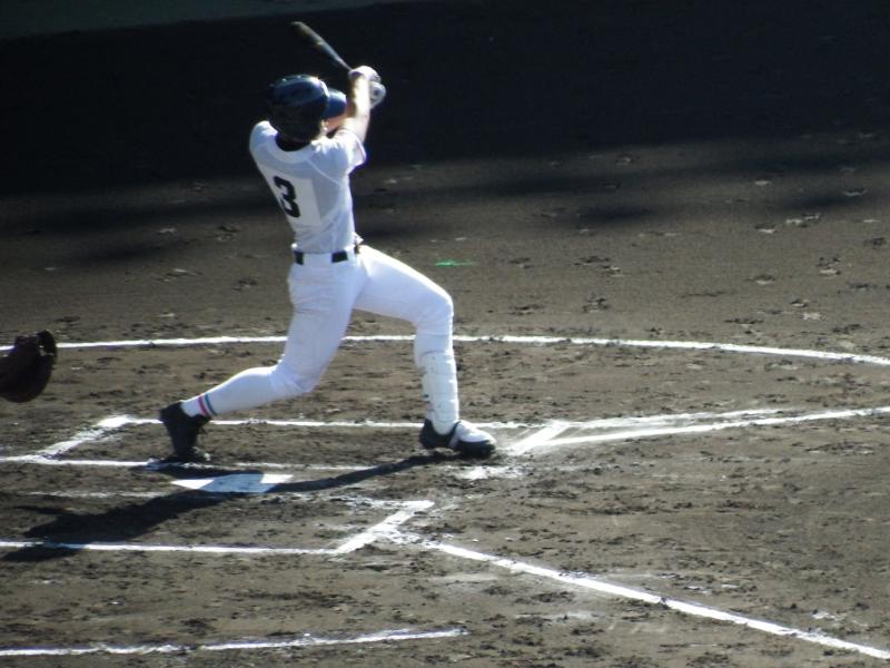 初回に敵失から好機をつくり、西岡武蔵選手(3S1)の適時打、稲葉隆也選手(3S1)の犠飛で3点を先制しました。2回には長野勇斗選手(3S5)の適時二塁打で1点を追加し、4−2で勝利しました。9回には長野外野手が背走しながらのダイビングキャッチで今井投手を救うなど大変盛り上がり、ベンチ・アルプスが一体となるような試合でした。