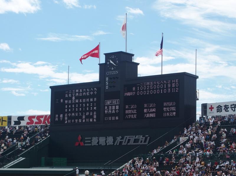 試合を振り返ってみると、三重高校の選手・応援団の息が合った戦いぶりもさることながら、対戦相手の沖縄尚学高校選手の決してあきらめないプレー、応援団のリズムに乗せた声援は見事でした。