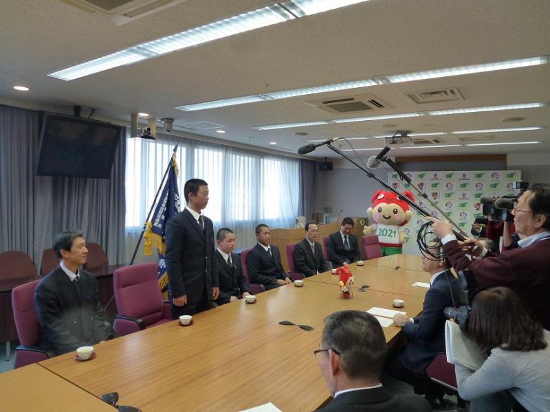 三重県知事様を表敬訪問し、甲子園出場の報告をしました