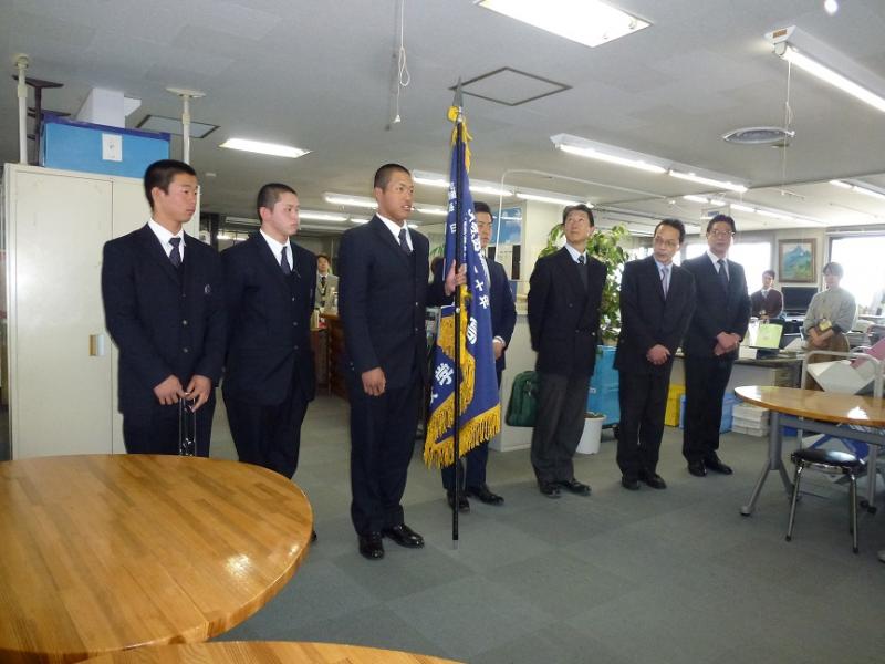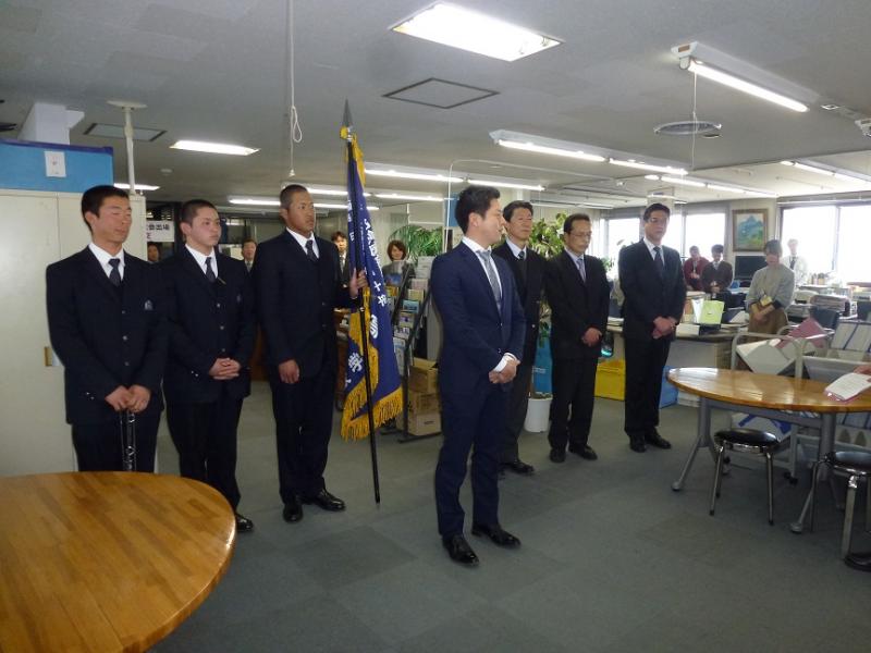そして、小島監督からは、「三重県の代表として、誇りを持って戦ってきます」。選手代表からは、「秋の東海大会で、一球の大切さや悔しさを知りました。この体験があったからこそ冬の苦しい練習にも耐えることが出来ました。甲子園大会では、全力で頑張ります。」などと、元気一杯の決意表明がなされました。