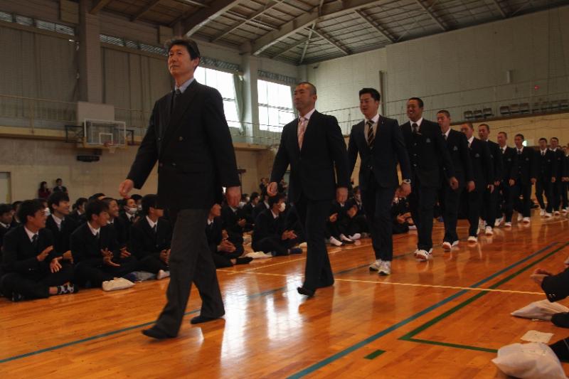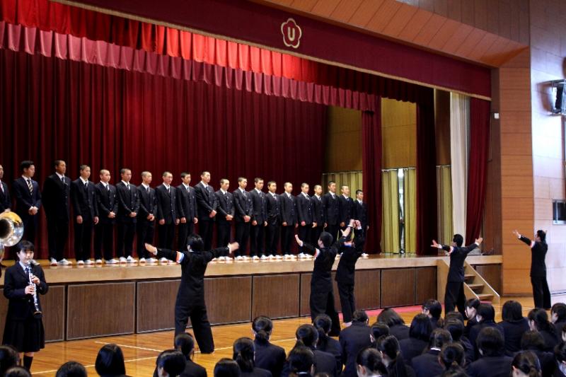 20日,終業式に続き「硬式野球部センバツ激励壮行会」を実施しました。