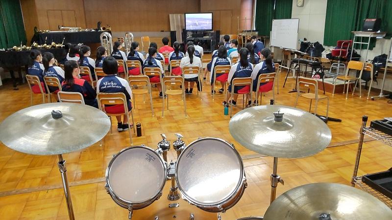 レッツゴー三重や三重高応援歌など、三重高オリジナル演奏で知られている本校ブラスバンド部の生演奏は行わず、あらかじめ校内で録音したものを甲子園で試合に合わせて流し、選手を励ましました。そして、試合開始とともに、音楽室でテレビ観戦をしました。また、一般の生徒は、自宅や校内各教室設置の電子黒板等でテレビ観戦しました。