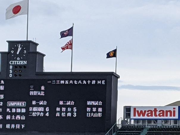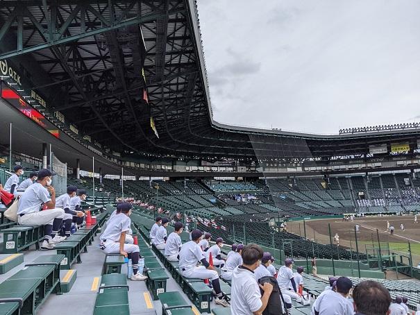 甲子園のバックスクリーンには、本校校旗が掲げ