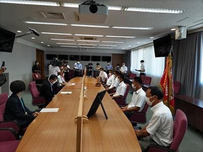 一見知事様からは、「行くからには優勝を目指し、悔いのない戦いをしてきてください。」などと話され、力強い言葉で激励されました。