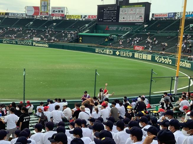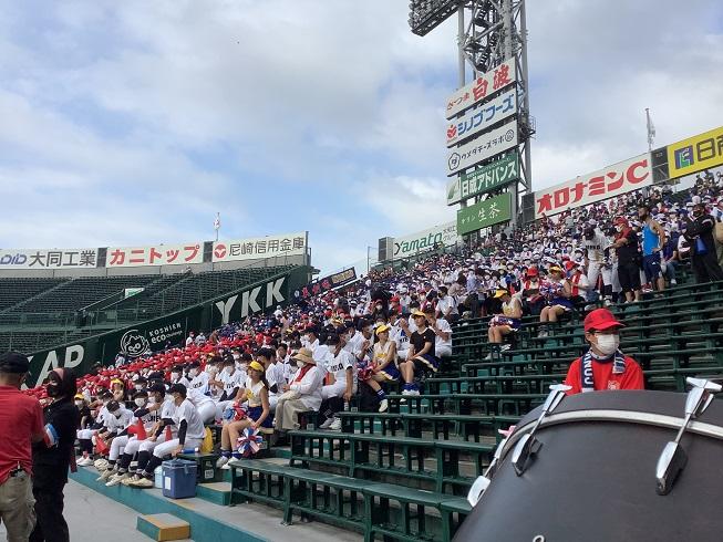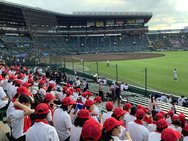 生徒の応援団は、バス10台に分乗して、甲子園に向かいました。朝から、甲子園は熱気に包まれています。試合が待たれる時間帯でした。