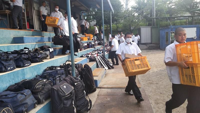 夕刻、甲子園で戦った選手達が学校に戻りました。理事長、監督からお話をいただき、解散となりました。甲子園のアルプススタンドで応援した1・2年生の部員たちは、秋季大会に向け明日8月10日から練習を開始します。三重県大会・東海大会、そして春の甲子園大会出場を目指してほしいと思います。