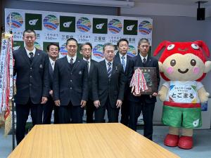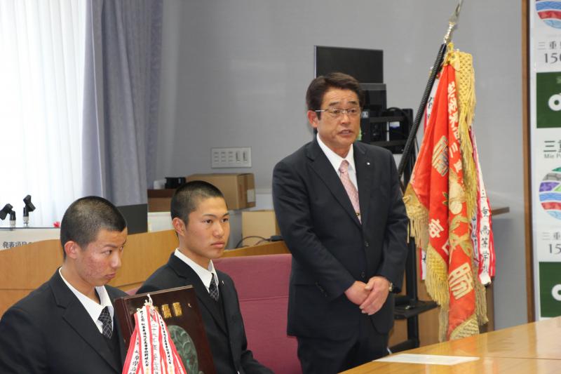 本校硬式野球部は、第98回 選抜高等学校野球大会(春のセンバツ)への出場(8年ぶり14回目)を決め、このたび 一見勝之三重県知事様を表敬訪問いたしました。