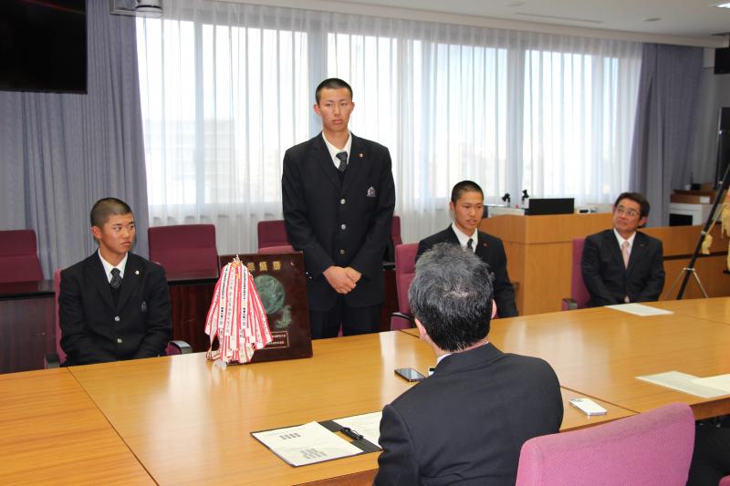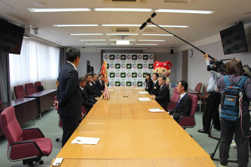 訪問では、出場決定の報告とともに、大会に向けた決意をお伝えしました。