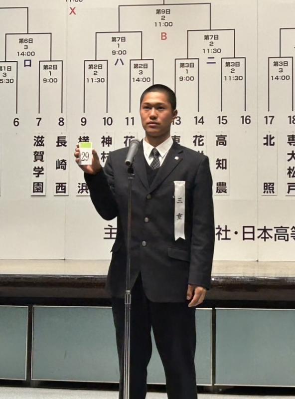 3月6日(金)、毎日新聞社大阪本社オーバルホールにて、午前9時より組み合わせ抽選会が行われ、本校の初戦の対戦相手が決定いたしました。本校は大会第5日目の 3月23日(月)14時00分 より、佐野日本大学高等学校(栃木)と対戦いたします。皆様の温かいご声援をよろしくお願い申し上げます。