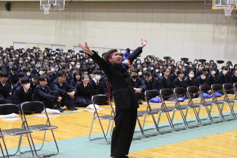式の締めくくりには、吹奏楽部の演奏により全校生徒で校歌を斉唱し、体育館は大きな歌声と拍手に包まれました。